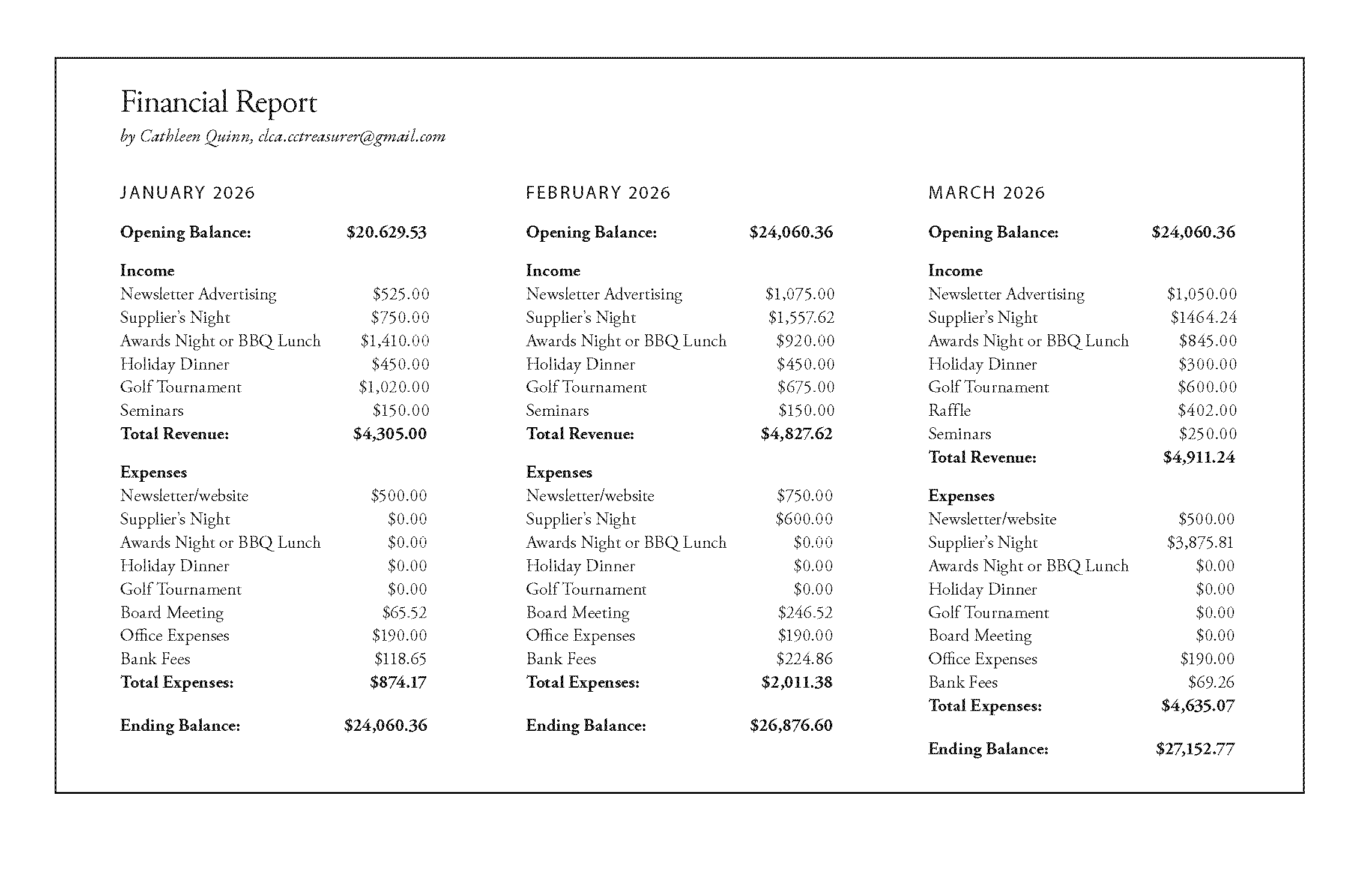 VI. March Meeting at Suppliers Night, March 19, 3:00 p.m. at The Back Nine