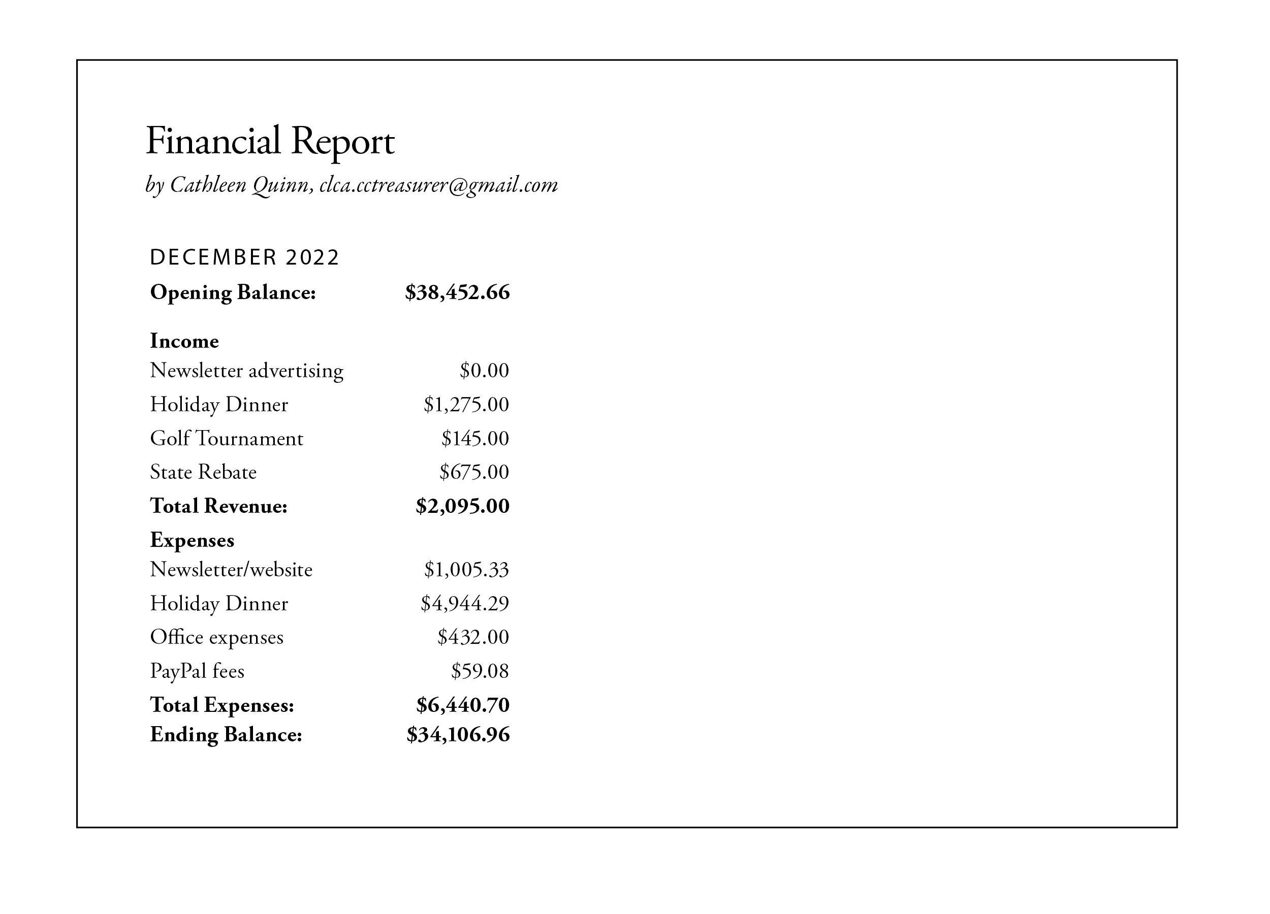 Phil and Regan to coordinate and handle final payment for 2022 Holiday Party (bring check to Seascape 12/8 before/at event)