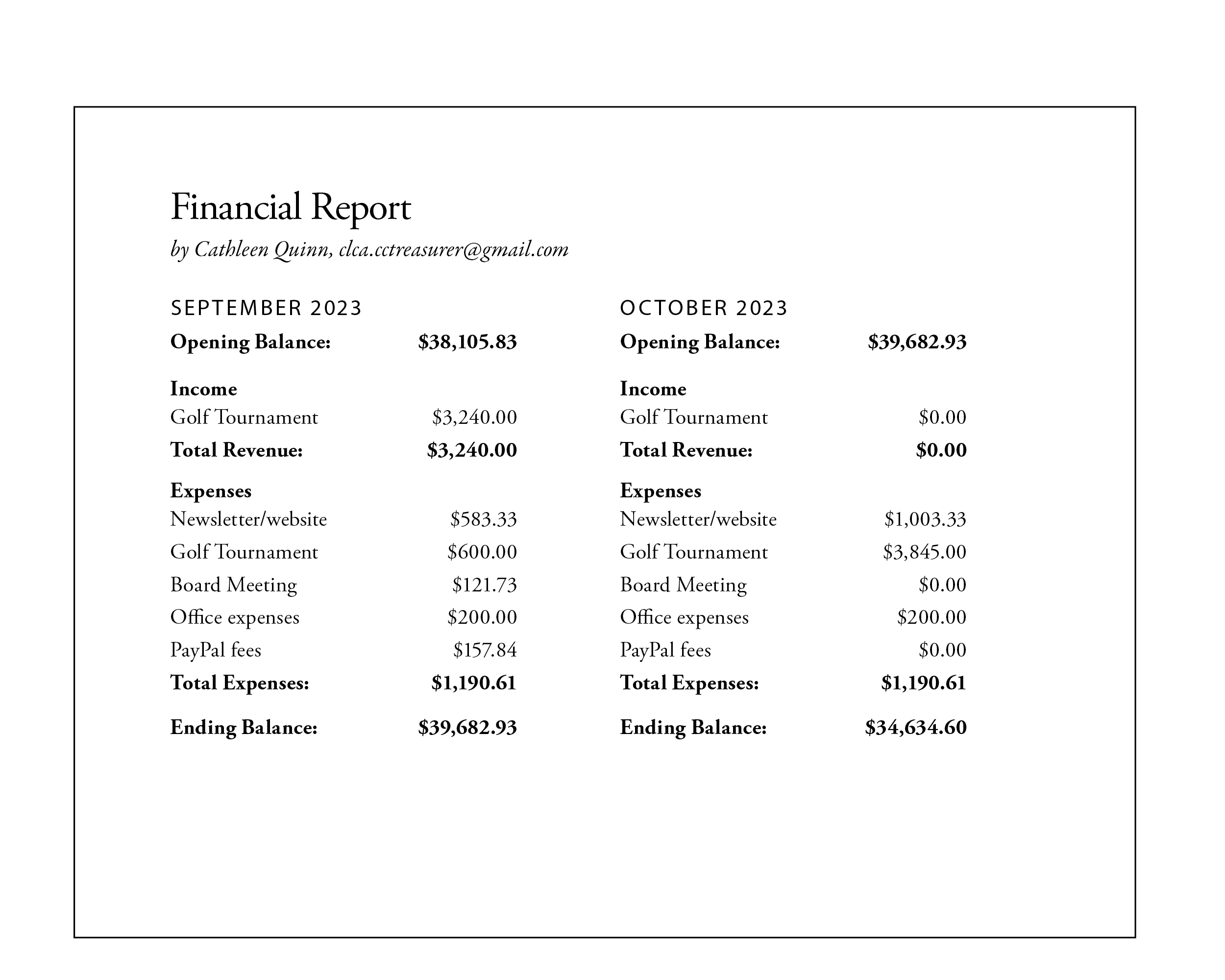 Director of Education/Treasurer (open)