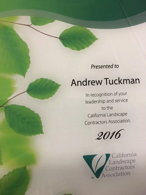 For many years, Andrew and Ben Bording (Cool Earth Gardens) created the CLCA All Star Band, playing at many of the chapter events as well as several state conventions. The All Star Band played a range of styles, from jazz to blues, rock to zydeco, funk, fusion, and world music. When asked about his time over the years Andrew said, “it was always my goal to unite the chapter bringing contractors together with suppliers, designers and business executives so that the green industry on the central coast could benefit from each other. And having the band made it all the more fun. It was an easy way to soften the social environment at events.” Andrew was awarded the Associate Member of the Year in 2016 for his dedication and hard work in the CLCA.